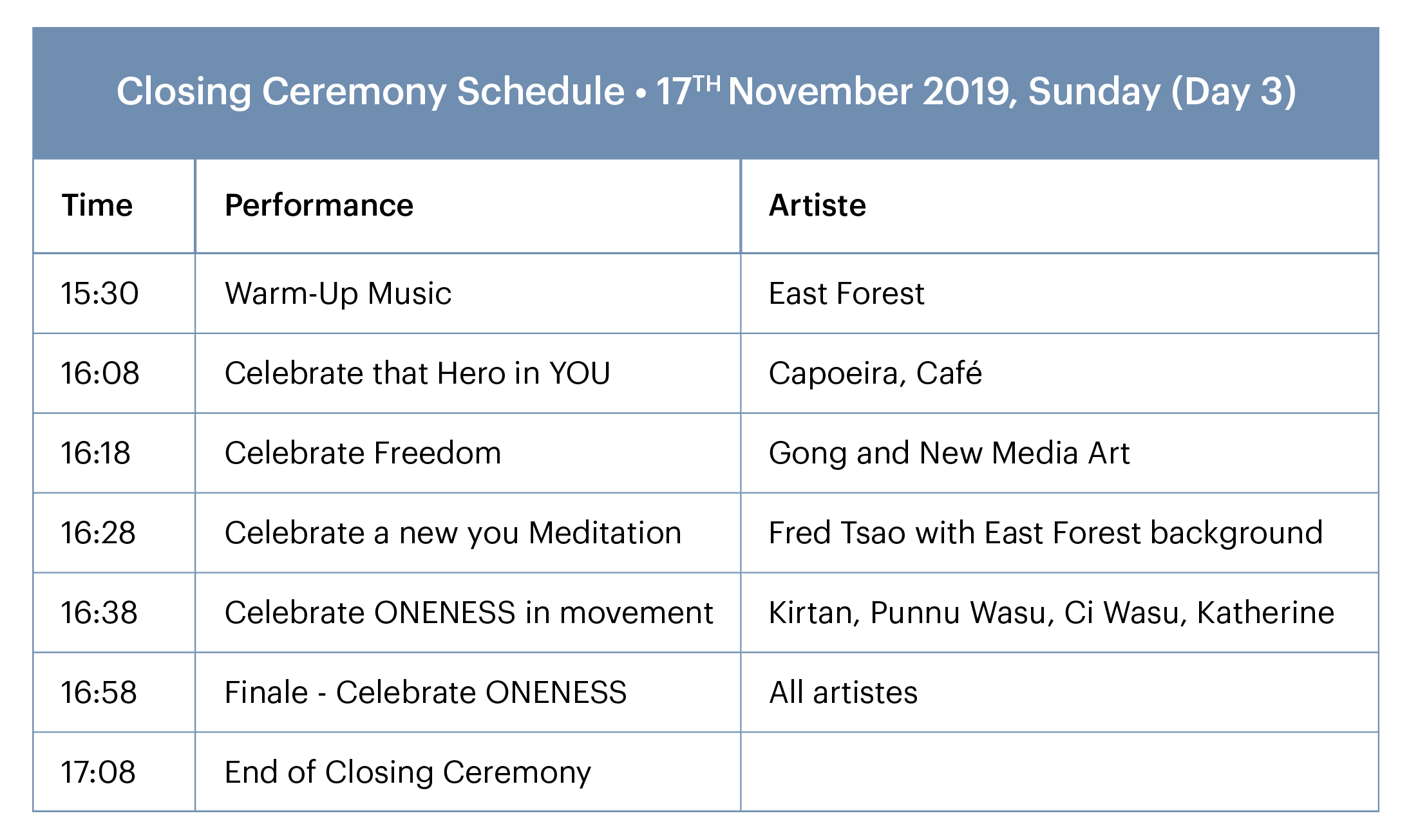 Closing Ceremony Artistes